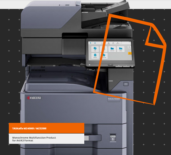 The TASKalfa MZ4000i series combines a simple, slick and fresh design with gesture-based operations, offering a fast and simple access to a wide range of document management functions with its new UI on a 10.1-inch resistive full-color touch panel. With minimized hardware keys, users can enjoy a seamless transition between the user interfaces while using the tablet-like display.